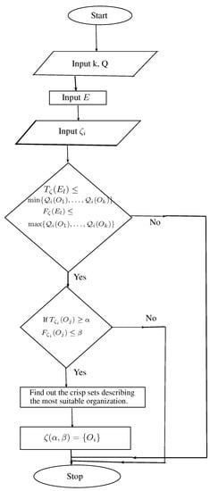 Hence, by considering different -levels corresponding to the satisfaction and dissatisfaction levels of customers, we can conclude which organization fulfills the actual demands of a customer. The flowchart describing the procedure of above application is given in Figure 7.