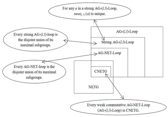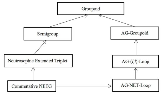 We have investigated the structure and properties of NETG and AG-NET-Loop in []. In the paper, we studied the structure of the AG-NET-Loop further and introduced the AG-(l, l)-Loop (which is the Abel Grassmann’s groupoid with local left identity and local left inverse), gave some infinite examples of them, and obtained some important results. We proved that every weak commutative AG-NET-Loop (or weak commutative AG-(l, l)-Loop) is commutative NETG (CNETG) and every AG-NET-loop is the disjoint union of its maximal subgroups. Moreover, we introduced the new notion of an AG-(l, l)-Loop and investigated the decomposition theorem of a strong AG-(l, l)-Loop. The main results of this paper are described in Figure 3. As the next research direction, we will explore the structure of the combination of the neutrosophic set, fuzzy set, soft set, and algebra systems (see [,,]).