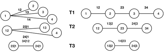 The basic idea of Vine copulas is to decompose a d-dimensional copula density into a pair-copula by conditioning such that it can help to reduce the number of dimensions and get the result. It is noteworthy to mention that there are different ways to decompose the density function. In this paper, we adopted C-Vine and D-Vine copulas and selected the sequence by empirical Kendall’s tau. A graph of four-dimensional tree decomposition of C-Vine and D-Vine is shown in Figure 1.
