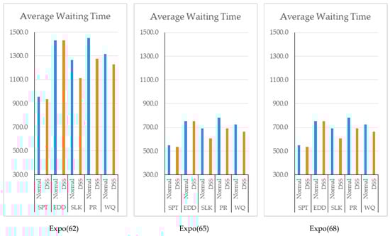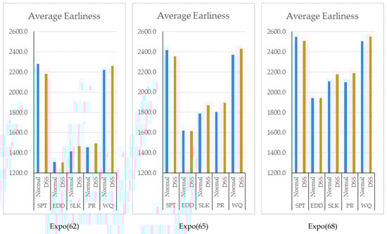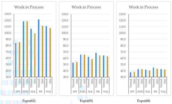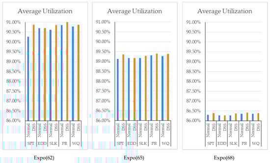 Since the DSS basically controls the situation of each workstation and updates the sequence of the jobs according to the dispatching rule, an increase in average utilization of each scenario is observed in Figure 5.