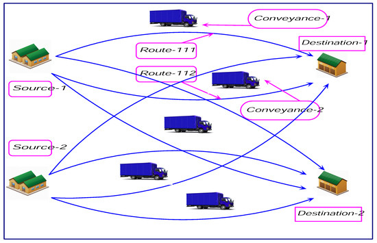 In general circumstances, the length of a route remains unchanged in a normal transportation problem, so it does not make any significant change in the minimization of cost or time. However, reality dictates that there may be a number of available option/paths for the transportation of an item from source to destination. The common knowledge suggests that the cost per unit for transportation or other fixed charges related to routes are of different values. Thus, it can be seen that a three-dimensional transportation problem (3D-TP) is converted to a 4D-TP. Such a 4D-TP was considered by Halder et al. [5].