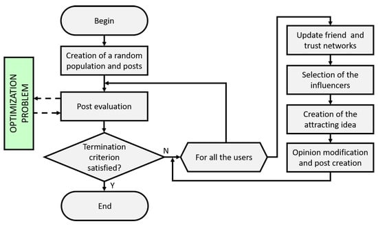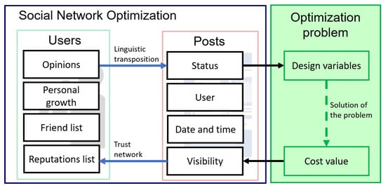 Figure 3 is representative of the basic structure of social network optimization and of its relation with a generic optimization problem.