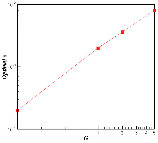 In the size-independent growth case, PBE is a convection equation () and displaysa strong hyperbolic property. The diffusive term should be added in order to obtain a stable and convergent numerical solution. Figure 3 shows the relationship between the optimal (with minimum and errors) and the growth rate G. It is clear that the optimal has a linear relationship with the growth rate G. Therefore, the coefficient of diffusive term () is recommended as 2G × 10−3 to G × 10−2, where G is the crystal growth rate.
