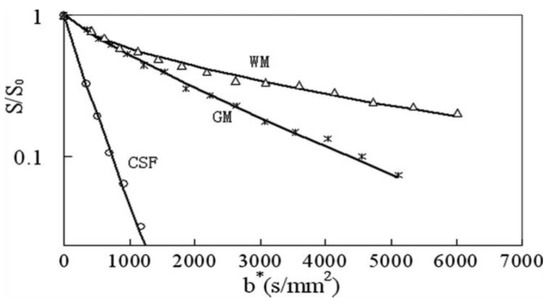 - Bennett, K.M.; Schmaidna, K.M.; Bennett, R.; Rowe, D.B.; Lu, H.; Hyde, J.S. Characterization of continuously distributed cortical water diffusion rates with a stretched-exponential model. Magn. Reson. Med. 2003, 50, 727–734. [Google Scholar] [CrossRef]