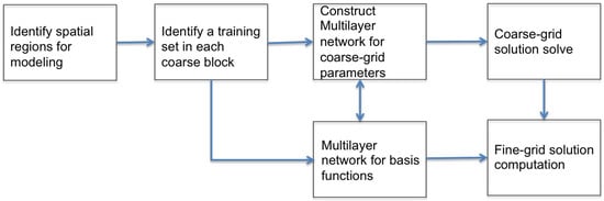 Results show that neural networks can represent and approximate a large class of functions. Recently, deep learning has been applied to model reductions and partial differential equations. In [], the authors studied deep convolution networks for surrogate model construction. on dynamic flow problems in heterogeneous media. In [], the authors studied the relationship between residual networks (ResNet) and characteristic equations of linear transport, and proposed an interpretation of deep neural networks by continuous flow models. In [], the authors combined the idea of the Ritz method and deep learning techniques to solve elliptic problems and eigenvalue problems. In [], a neural network has been designed to learn the physical quantities of interest as a function of random input coefficients. The concept of using deep learning to generate a reduced-order model for a dynamic flow has been applied to proper orthogonal decomposition (POD) global model reduction [] and nonlocal multi-continuum upscaling (NLMC) [].