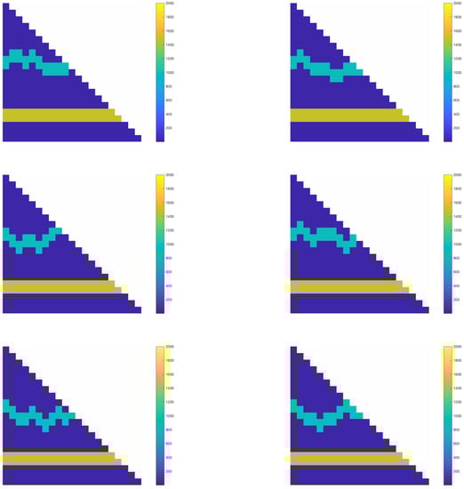 - in experiment 1, the channel configurations were all distinct, and the permeability coefficients inside the channels were fixed in each sample (see Figure 5 for illustrations), and
