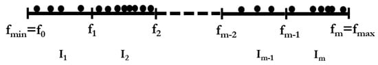 Iin traditional PSO, both diversity maintenance operator and fitness evaluation operator are conducted in distance-based measurement space. This will result in a heavy coupling in particles’ update for exploitation and exploration, which brings a big challenge in balance the weights of the two abilities. To overcome this problem, in this paper, we propose a novel idea to improve PSO which is termed entropy-assisted particle swarm optimization (EAPSO). In the proposed algorithm, we consider both diversity maintenance and fitness evaluation independently and simultaneously. Diversity maintenance and fitness evaluation are conducted by frequency-based space and distance-based space, respectively. To reduce the computation load in large scale optimization problem, in this paper, we only consider the phonotypic diversity, which is depicted by fitness domain, rather than genetic diversity. In each generation, the fitness domain is divided into several segments. We account the number of particles in each segment, as shown in Figure 1.