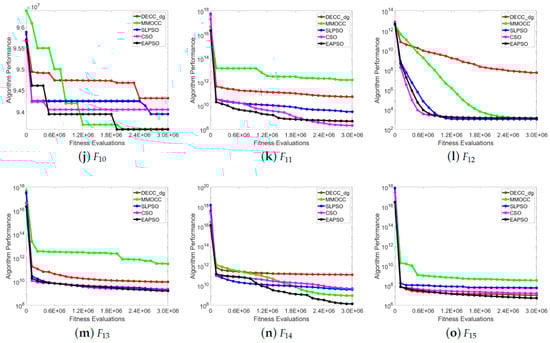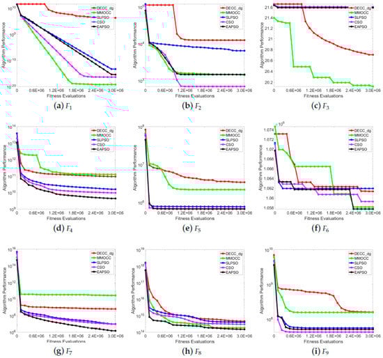 Convergence profiles of different algorithms obtained on the CEC’2013 test suite with 1000 dimensions.