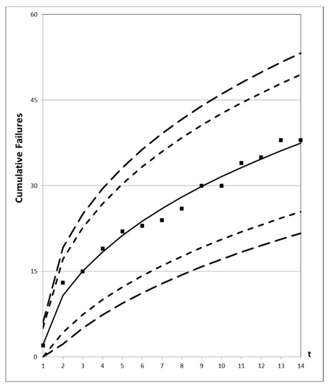 - Hossain, S.A.; Dahiya, R.C. Estimating the parameters of a non-homogeneous Poisson-process model for software reliability. IEEE Trans. Reliab. 1993, 42, 604–612. [Google Scholar] [CrossRef]