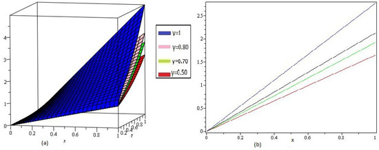The NTDM solution for and 1 are reported in Table 2. The surface solution behavior of for different values of 1, , and are depicted in Figure 3, and the plots of the solution for at different time intervals is depicted in Figure 3. The error plot of Example 2 show in Figure 4.