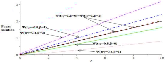 Table 1. Fuzzy and crisp solution of ψ ( t ) at α = 1 and γ = 1 .