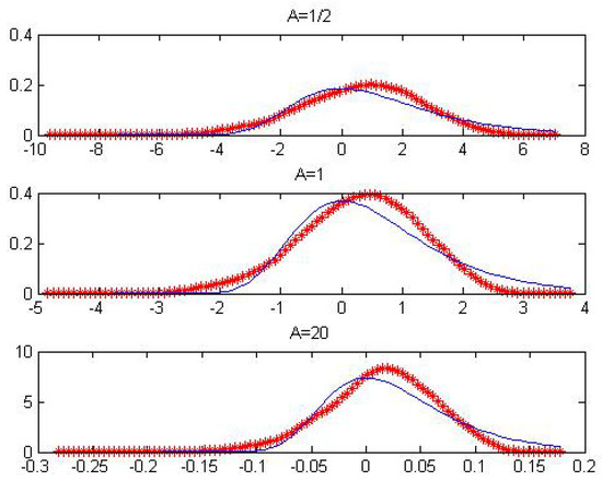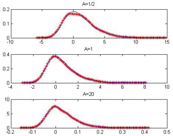 It can be easily seen that the probability density function of will converge to , which will be verified by numerical experiments in Section 5.