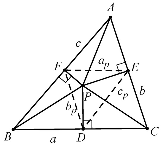 Let be the pedal triangle of P with respect to the triangle (see Figure 1), and let , then it is easy to get