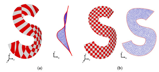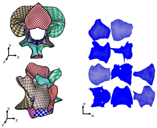 - Hormann, K.; Polthier, K.; Sheffer, A. Mesh Parameterization: Theory and Practice. In Proceedings of the ACM SIGGRAPH ASIA 2008 Courses, SIGGRAPH Asia’08, Singapore, 10–13 December 2008; ACM: New York, NY, USA, 2008; pp. 12:1–12:87. [Google Scholar] [CrossRef]