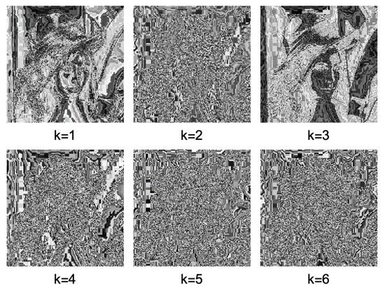 It is important to note that this transformation by itself is not secure against cryptanalysis (see, for example, the homogeneous patterns exhibited by some transformed images in the examples). In this sense, it is necessary to include it as a part of a more complex algorithm.