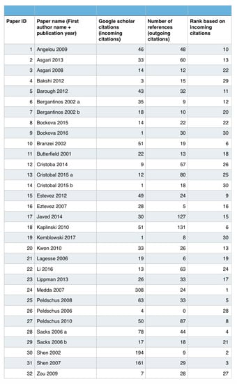 - The reference list of each remaining paper was considered, and checked against the list of papers already excluded. If a paper was not already excluded or not in Scopus, then it went through steps 2 and 3 of the screening process, and included in our review and classification if selected. At the end of this step, 32 papers were selected for inclusion in this review.