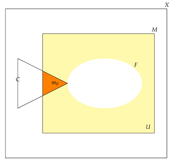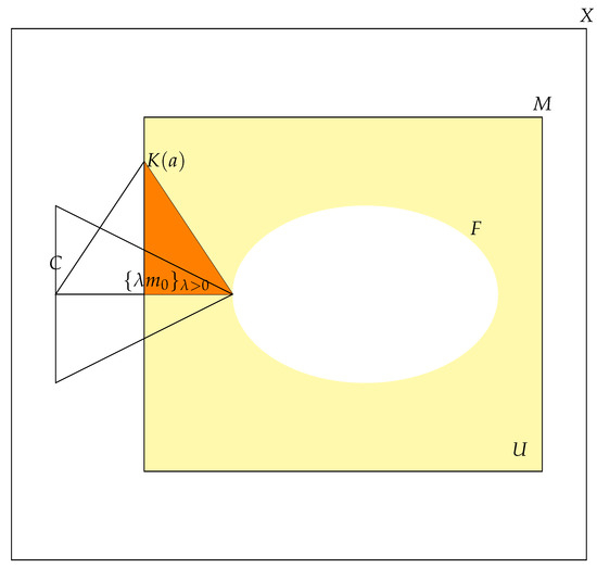 Table 1. Possible properties of ⪰ and types of cones. Source: Own elaboration. - There exist markets for only some of the contingent claims of X, say , and the collection of the marketed claims M, called the marketed claims space, is the linear subspace spanned by . Thus, a marketed claim is a portfolio of short and long positions (an investor has long positions if such investor has bought and owns those shares of stocks, whilst the investor has short positions of s/he owes those stocks to someone) in the available markets. We will employ the notation for a marketed claim where the number of proportions of the claim is non null only for a finite number of markets. Therefore, the number of markets is not necessarily finite [5]. In short, we have the following equality:Said in other words, M is the direct sum of subspaces :where is the subspace of M generated by . In algebraic terms, M is the subset of where only finitely many terms are nonzero. Of course, the condition that M is a subspace supposes a frictionless trading, that is to say, unlimited short sales without transaction costs.
