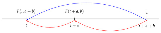 for every t and . This means that the agent does not obtain any advantage when he divides the complete period of time, , of the investment into two intervals, and . (In [38] these discount functions were labeled decomposable financial laws.) The algebraic characterizations of this property have been studied from several points of view [39] and, particularly, by considering the Algebraic Automata Theory [40].