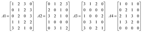 Blocking constraint matrices used for the (n = 5, m = 5) test.