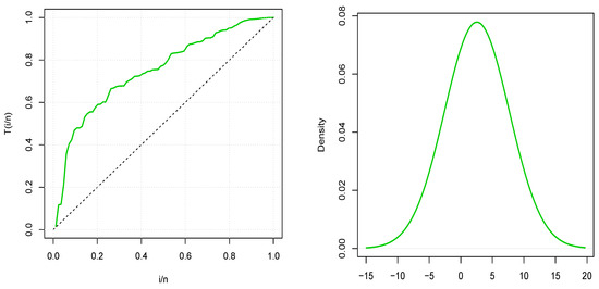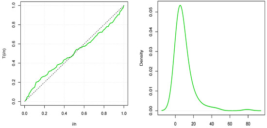 where is the pdf corresponding to . One can remark that the TIITL-G family is a simplified version of the Kumaraswamy-G family by [26]. The role of the parameter is to create new possible levels of skewness and tail weights from the cdf . Therefore, the TIITL-G family was naturally used to extend several well-known distributions, with applications. For instance, we refer the reader to the works of [27,28] for extension of the inverse and generalized inverse Rayleigh distributions and [29] for extension of the inverted Kumaraswamy distribution.