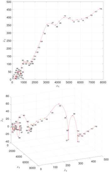 The PPS is useful for studying complex and non-linear dynamics. The PPS is more robust against noise than the classical phase space (PS) method and allows representations using a small number of measurements. The PPS reconstruction follows the Takens’ embedding theorem [38]. If a TS represented by is an attractor component represented by a smooth d-dim manifold, then the topological properties of the TS are equivalent to those of the embedding n-dim vector: