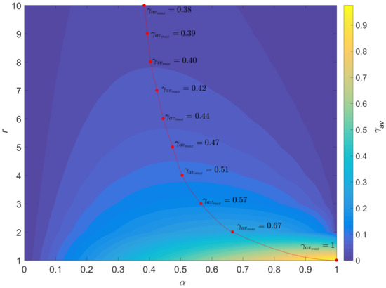 Equation (9) leads directly to . Figure 3 depicts the evolution of versus , where the line connects the points with maximum value .