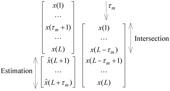 One possible way for selecting J is to adopt the autocorrelation function between and , for . The value of is given by the first minimum. The fractal dimension and the mutual information [19,39] were also adopted, but it is not clear which index is superior and we often find several difficulties, such as low precision or small sensitivity, the influence of noise, or problems due to the limited length L.