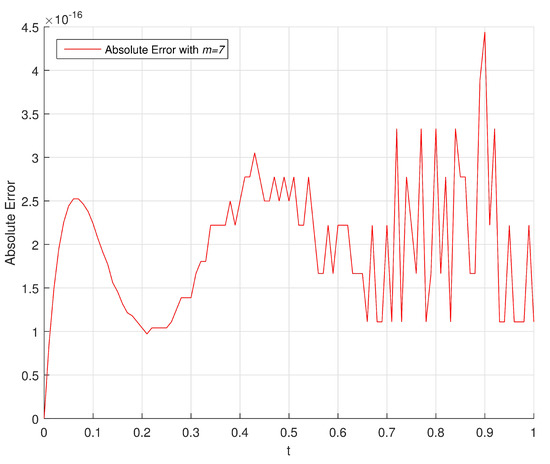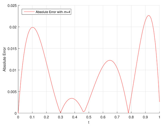 Table 1, compares the obtained results for absolute error with . We observe from Table 1 that, the absolute errors for presented method are smaller and the numerical solution is more accurate for the same size of m.