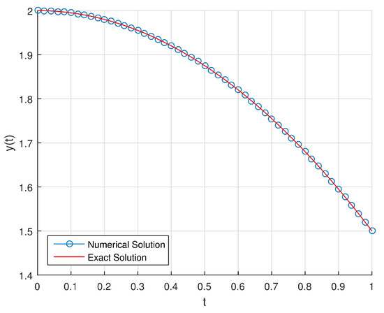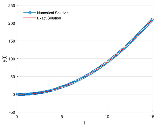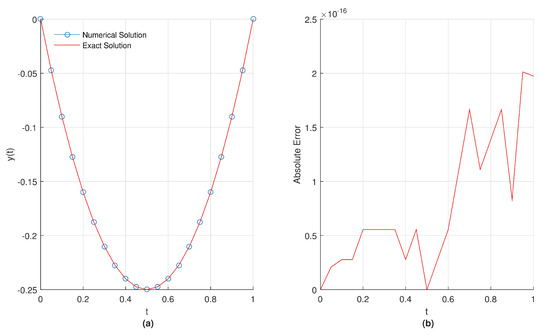 Finally, by taking the collocation points () in Equation (18), we get linear algebraic equations. This linear system can be solved for the unknown vector . Consequently, can be approximated by Equation (15).