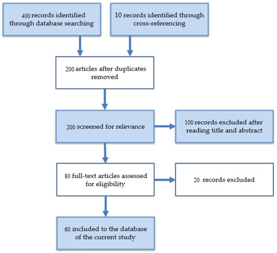 The survey adopts the Prisma standard to identify and review the DL and DRL methods used in economics. As stated in [], a systematic review based on the Prisma method includes four steps: (1) identification, (2) screening, (3) eligibility, (4) inclusion. In the identification stage, the documents are identified through an initial search among the mentioned databases. Through Thomson Reuters Web-of-Science (WoS) and Elsevier Scopus, 400 of the most relevant articles are identified. The screening step includes two stages in which, first, duplicate articles are eliminated. As a result, 200 unique articles moved to the next stage, where the relevance of the articles is examined on the basis of their title and abstract. The result of this step was 80 articles for further consideration. The next step of the Prisma model is eligibility, in which the full text of articles was read by the authors, and 57 of them considered eligible for final review in this study. The last step of the Prisma model is the creation of the database of the study, which is used for qualitative and quantitative analyses. The database of the current research comprises 57 articles, and all the analyses in this study took place based on these articles. Figure 1 illustrates the steps of creating the database of the current research based on the Prisma method.