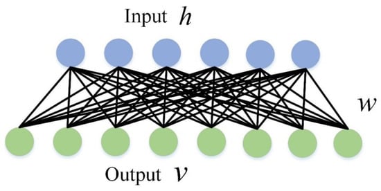 The basic building block of deep belief networks is known as a restricted Boltzmann machine (RBM) which is a layer-wise training model []. It contains a two-layer network with visible and hidden units. One can express the joint configuration energy of the units as Equation (3):