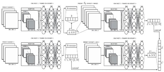 CNNs are composed of a stack of periodic convolution layers and pooling layers with multiple fully connected layers. In the convolutional layer, CNNs employ a set of kernels to convolve the input data and intermediate features to yield various feature maps. In general, the pooling layer follows a convolutional layer, which is utilized to diminish the dimensions of feature maps and the network parameters. Finally, by utilizing the fully connected layers, these obtained maps can be transformed into feature vectors. We present the formula of the vital parts of the CNNs, which are the convolution layers. Assume that is the input cube with the size of where refers to the spatial level of , and counts the channels. The -th filter is specified with weight and bias . Then, one can express the -th output associated with the convolution layer as Equation (4):