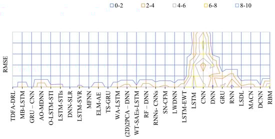 Deep learning (DL) techniques are based on the use of multi-neurons that rely on the multi-layer architectures to accomplish a learning task. In DL, the neurons are linked to the input data in conjunction with a loss function for the purpose of updating their weights and maximizing the fitting to the inbound data [,]. In the structure of a multi-layer, every node takes the outputs of all the prior layers in order to represent outputs set by diminishing the approximation of the primary input data, while multi-neurons learn various weights for the same data at the same time. There is a great demand for the appropriate mechanisms to improve productivity and product quality in the current market development. DL enables predicting and investigating complicated market trends compared to the traditional algorithms in ML. DL presents great potential to provide powerful tools to learn from stochastic data arising from multiple sources that can efficiently extract complicated relationships and features from the given data. DL is reported as an efficient predictive tool to analyze the market [,]. Additionally, compared to the traditional algorithms, DL is able to prevent the over-fitting problem, to provide more efficient sample fitting associated with complicated interactions, and to outstretch input data to cover all the essential features of the relevant problem [].