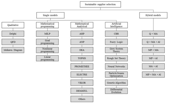 - Zimmer, K.; Fröhling, M.; Schultmann, F. Sustainable supplier management—A review of models supporting sustainable supplier selection, monitoring and development. Int. J. Prod. Res. 2016, 54, 1412–1442. [Google Scholar] [CrossRef]