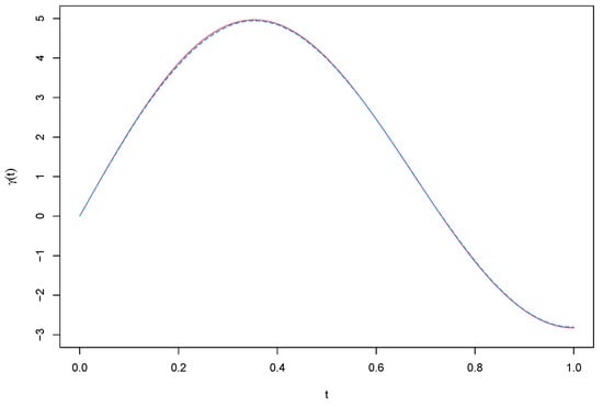 There are many methods which can be used to deal with functional data, such as the functional principal component method, spline methods, and the rough penalty method. Functional principal component analysis (FPCA) can analyse an infinite dimensional problem by a finite dimensional one—therefore, FPCA is popular and widely used by researchers. Dauxois et al. [] investigated the asymptotic theory of FPCA. Cardot et al. [] applied FPCA to estimate the slope function of the functional linear model. Hall and Horowitz [] and Hall and Hosseini-Nasab [] showed the optimal convergence rates of slope function based on the FPCA technique.