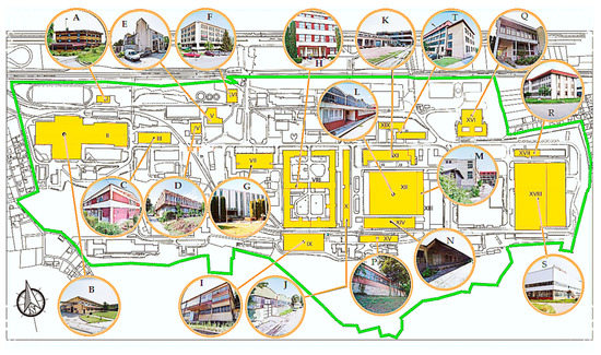 A variety of reasons led to the abandonment of buildings, but the descent of the manufacturing process and increase in demand for the service sector are among the significant ones. These buildings can be visual landmarks of the modern environment and have architectural or historical value suitable for attracting tourists and investment, which enhances social and economic benefits and enables the recognition of the city. The procedure of preserving industrial built heritage has developed firstly to use the social, cultural, and economic advantage of their location while attracting domestic and foreign investment, tourists, and the local population. The renovation of buildings, including changing or rearranging existing surroundings, together with the set of measures involved in the adaptive reuse process, for the past two decades, has played a big role in the process of sustainable change of industrial heritage. Following the functional, technical, constructive, and aesthetic requirements of new uses, a set of measures and activities have been needed to transform the existing architectural structure [1]. Industrial facilities were primarily created to place large machines jointly with manufacturing equipment that occupy significant spatial capacity which, together with constructional characteristics, has an undoubted significance in the determination of property value in the process of modifying buildings for different purposes. The adaptive reuse of buildings, as a concept developed with the promotion of sustainability, offers great opportunities in the field of architectural design, to extend the life of buildings that are no longer in use [2,3,4,5,6]. For the research in this subject area, 19 characteristic industrial buildings were selected, whose structures differ significantly (Figure 1).