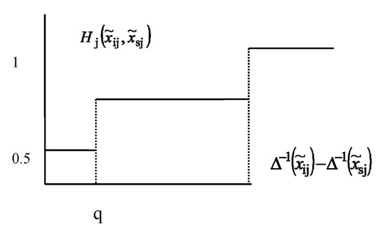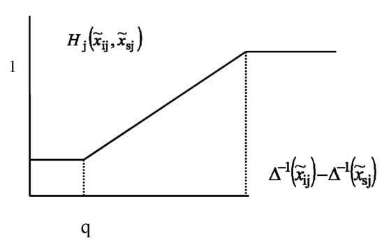 At the second stage, we evaluate the qualified applicants (suitable applicants or candidates) in accordance with qualitative criteria. For any two suitable applicants  and  (,), the difference value between them with respect to qualitative criterion j can be expressed as . Therefore, a preference degree of suitable applicant  over  for qualitative criterion j is defined as: