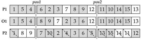 - Extract operation genes which are selected for crossover in Step3 from P2, and reorder them to make the sequence of these operations consistent with the sequence in P1;