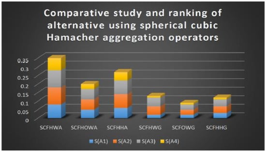 52]. The calculation utilizing TSFS for MCDM issues cannot deal with them under the same uncertain circumstances, so their proposed calculations may not deliver the precise outcomes in spite of the fact that SCFHWA operators do not have such impediments, and in this manner, can give progressively precise outcomes. The results demonstrate that the proposed system is continuously capable of dealing with the defenselessness of the dynamic appraisal given by the decision-maker. For the given solution to the certified enterprise determination problem, an objection ranking result can be made, and the conditions under which decision-makers show constrained insight can be shown. Additionally, the proposed assessment of the enterprise performance model sufficiently contemplates the distinctive significance of the evaluation criteria, which makes the ranking orders progressively predictable with the situation.