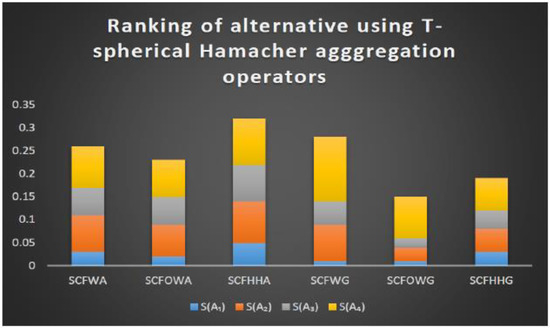 Section 7, we discussed the numerical problem, as the SCFN is the most advanced structure, so it is not feasible for the current fuzzy aggregation operators to resolve the data contained in said issue, which shows that the current aggregation operators have a constrained methodology. In any case, we can effectively understand any issue under the TSFS and ICFS data by adding the information as a neutral membership in the ICFs. Therefore, SCFS is a more general idea than TSFS and provides more accurate results. In this manner, the SCFHA operator is the most impressive for determining eccentric issues.