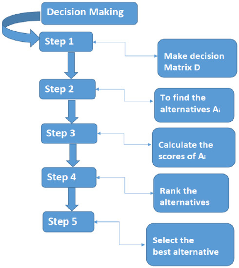 Here, represents the complement of . Along these lines, we obtain the normalization of the SCF decision matrix, which is represented by and given by