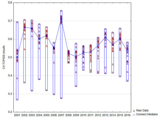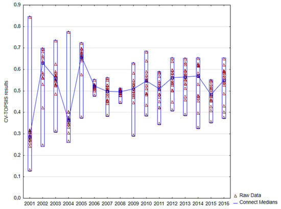 Total results of CV-TOPSIS method for period of years 2001–2016 (variant I.).