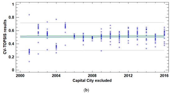 Confirmed linear relation between results of CV-TOPSIS method for period of years 2001–2016 (variant II.).