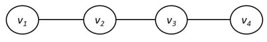 Consider an undirected, connected, finite graph with a set of vertices and a set of edges E. Denote by a finite-dimensional Hilbert space of the real-valued functions on V with the canonical scalar product defined by . Note that the indicator functions for form the canonical orthonormal basis of . Recall that the combinatorial graph Laplacian L on a graph G is a self-adjoint, positive semidefinite, linear operator on , characterized by the following matrix: