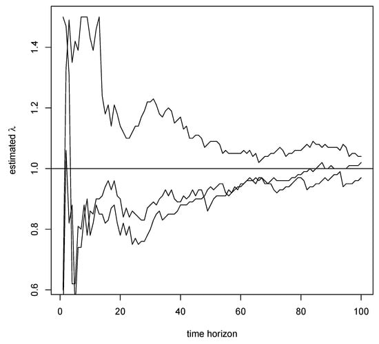 The solutions have been simulated with short time horizon and with time step . For the purpose of estimating λ, we have sampled the simulated solution with time step , i.e., we have taken every 10th simulated value.