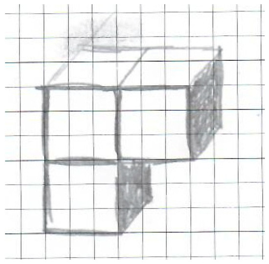 Later, Maria started working with Peter, who is also considered to have huge mathematical potential. Maria had noticed that cube buildings are a very specific consideration of more general cube figures and argued: “But it does not have to be at all that the cubes are only at the bottom. It can happen that the cubes would fall, but then, there would still be surface to surface and edge to edge”. Together with Peter, she sketched her ideas for a cube building with three cubes (Figure 6).