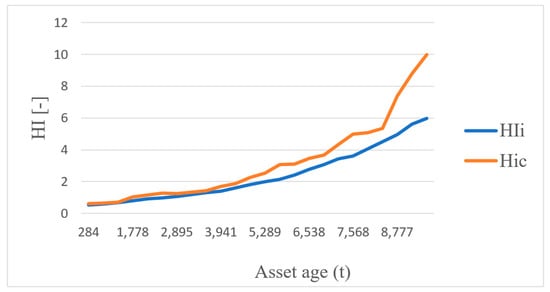 where HIi(t) is the Initial Current Health Index for each age of the asset, and HIC(t) is the Current Health Index for every age of the asset.