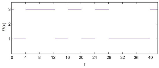 In this example, we utilize a realization of the Bernoulli process, for construction of a discontinuous unpredictable function by considering it as infinite sequences of two integers 1 and 3 with equal probability such that according to (Theorem 1, [20]). Then, there exists an unpredictable sequence , , and there exist sequences , , , of positive integers both of which diverge to infinity as such that for each i in bounded intervals of integers and for each natural number n.