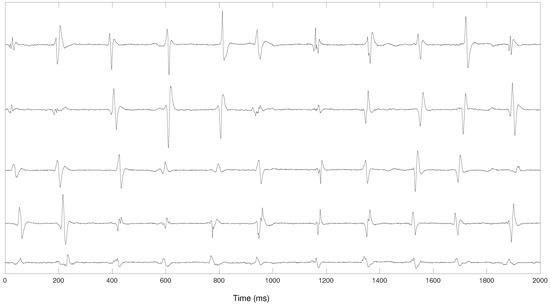 Electrode catheters are used for recording and pacing. These consist of insultated wires that, introduced via a transatrial septal long sheath, are connected to their respective electrodes at the distal tip of the catheter. Our recordings are derived from a ten pole catheter, with bipolar electrodes positioned 2 mm apart and an interelectrode distance of 5 mm (Lasso, 2-5-2 mm electrode spacing). The catheter was configured according to distal ring with its five bipolar electrodes surrounding the PV. With this configuration, the distance between the electrodes was either 5 mm or 10 mm. The wires from the catheter were connected to an external device that digitized and recorded the signals at a sampling rate of 1 kHz.