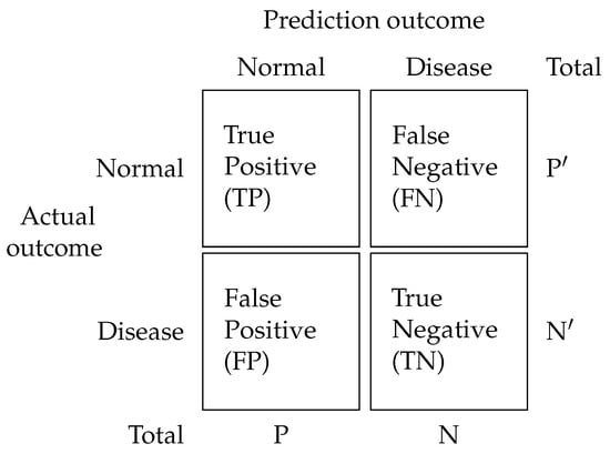 In this research, we implement 25 algorithms over 14 datasets and three different validation strategies, providing 1050 combinations of algorithm-datasets-validation methods. Three different validation procedures are taken into account to anticipate a poor bias and variance due to a small size of samples in each dataset. Furthermore, different validation procedures ensure that the experimental results were not obtained by chance. The test results are the average of 10 elements at each resampling method. All classifiers’ performance are assessed in terms of AUC metric. By referring the contingency table shown in Figure 2, AUC value of a classification algorithm can be calculated as: